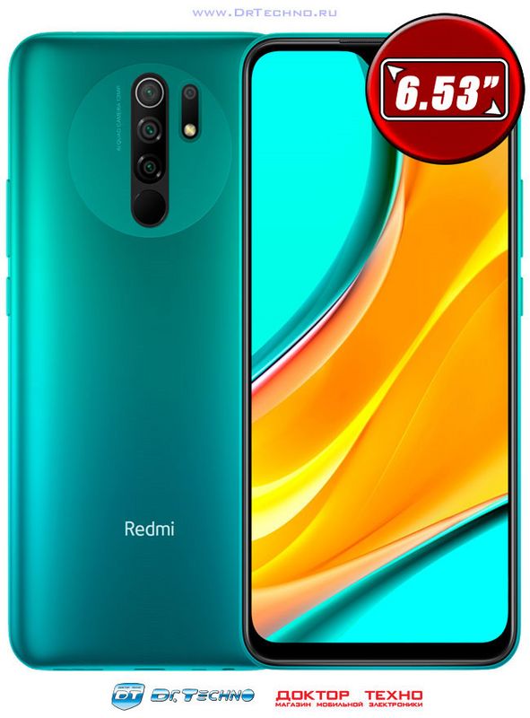 Xiaomi Redmi 9 6/128GB...Redmi 9 оснастили 6,53-дюймовым IPS-дисплеем с каплевидным вырезом под фронтальную камеру. Сканер отпечатков пальцев расположился сзади вместе с четырьмя модулями тыльной камеры. Разрешение основного сенсора составляет 13 Мп. Из интересных функций отмечается поддержка записи видео с эффектом калейдоскопа.