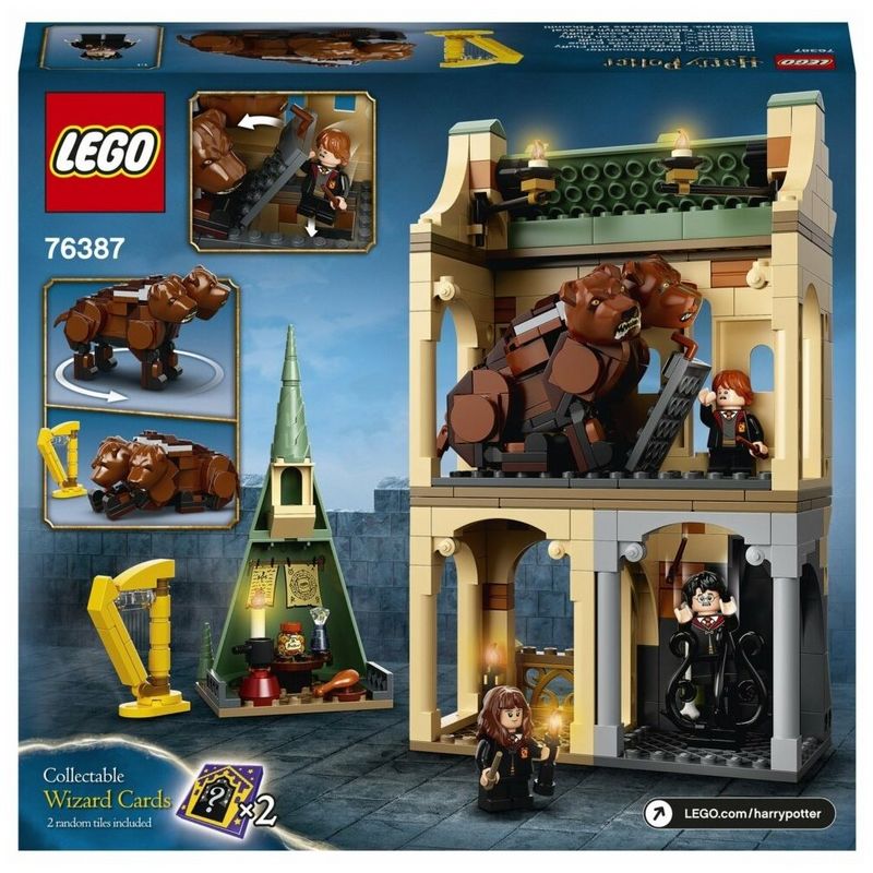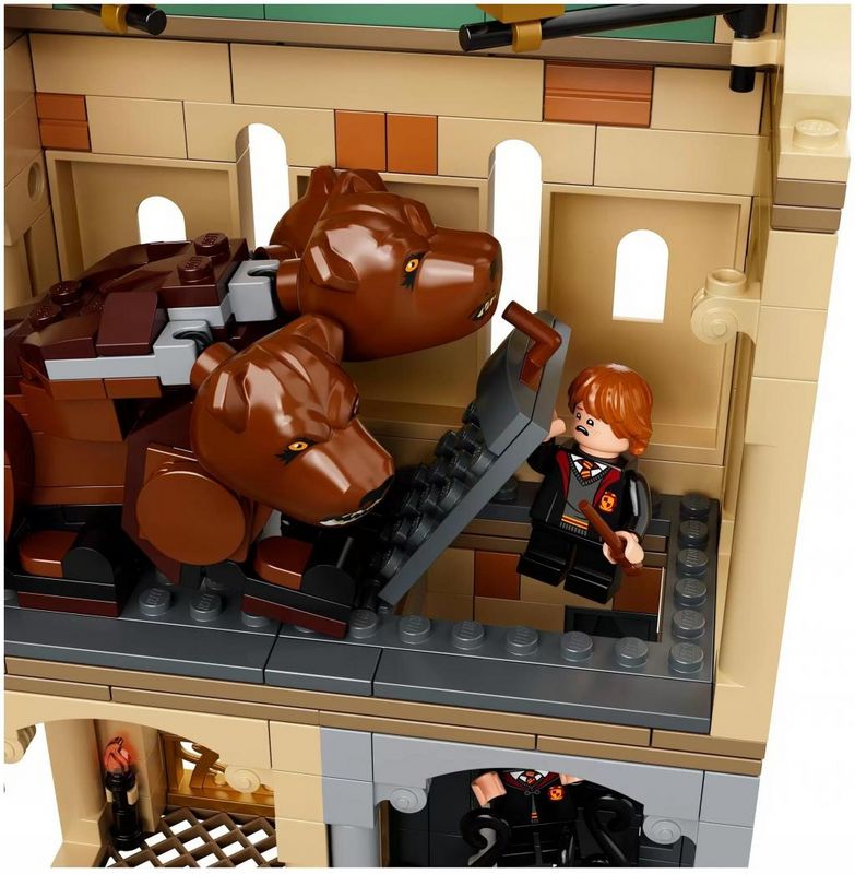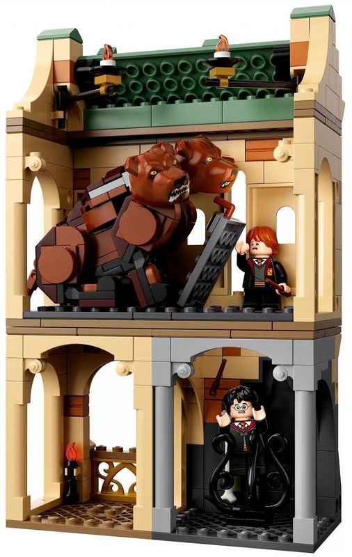 Содержит минифигурки Гарри Поттера, Гермионы Грейнджер и Рона Уизли, гигантского трехголового пса, 5 модулей и аутентичные аксессуары, в том числе волшебную арфу.