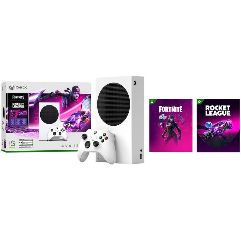 - Игровая приставка Xbox Series S 512 ГБ SSD, Fortnite + Rocket League, белый/черный