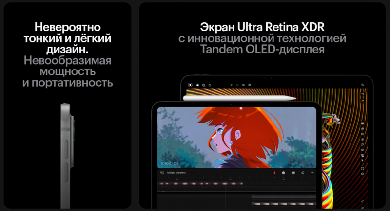 Планшет Apple iPad Pro 11 2024 M4, 512 ГБ, Wi-Fi, space black...Совершенно новый дизайн iPad Pro 11 (2024) поражает своей портативностью и тонкостью. Это самое тонкое устройство в истории Apple. Боковая панель планшета имеет всего 5,1 миллиметра толщины и оснащена кнопками громкости. Дизайн характеризуется скругленными углами, прямыми краями и рельефной системой профессиональной камеры.