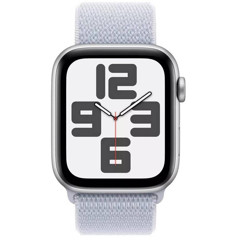 • Apple Watch SE 2024 GPS 40 мм Silver Aluminium Case with Sport Loop (MXEE3), cloud blue