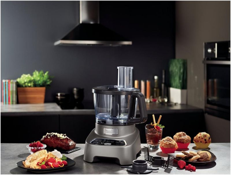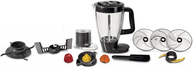 Комбайн Moulinex FP827E10 серый...Кухонный комбайн Moulinex FP827E10 с 10 насадками заменит множество приспособлений для механической обработки разных продуктов. В комплект входят съёмные элементы для нарезки, измельчения, взбивания, шинковки, натирания, выжимания соков, работы с тестом, приготовления соусов, кремов. ОСОБЕННОСТИ УПРАВЛЕНИЯ Два скоростных режима позволяют регулировать интенсивность и мощность, а импульсный пригодится, чтобы быстро измельчить твёрдые продукты. Для каждой чаши разработан определённый режим: синяя – невысокая скорость и большая сила вращения, зелёная – наоборот. ПРОСТОЙ ИНТЕРФЕЙС На интуитивно понятной сенсорной панели управления расположено семь запрограммированных кнопок, каждая из которых обеспечивает оптимальный режим обработки разных продуктов. Специальный индикатор блокировки предупредит, если чаша или крышка установлены неправильно.