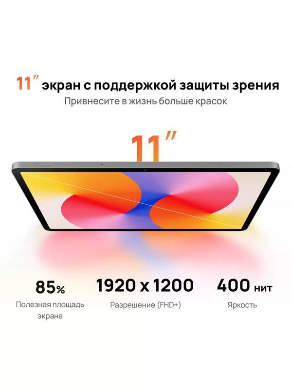 Планшет Huawei MatePad SE11 2025 (53014GXU) обладает 11-дюймовым дисплеем разрешением 1920x1200 пикселей, выполненным на основе матрицы IPS. Изображение детализированное, с естественной цветопередачей, яркость достигает 400 нит. Частота обновления 60 Гц гарантирует плавность при решении стандартных задач: прокрутке страниц, просмотре видео.